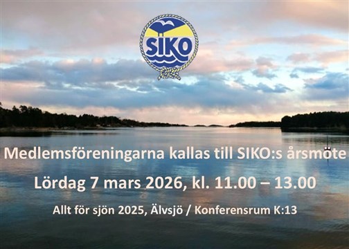 SIKO:s årsstämma 2026, lördag 7 mars kl 11.00 på Allt för sjön 2026 i Älvsjö